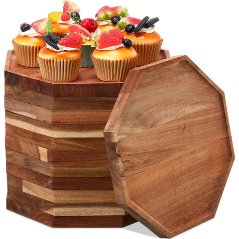 FLYWOD düğün plaka yemekleri yemek Cupcake ahşap tepsiler Set lüks akasya ahşap servis örtüsü ahşap plaka servis tepsisi