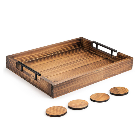 FLYWOD 2025 Trending Wholesale Rustic Acacia Wood Tray with Handle Breakfast Wooden Serving Tray