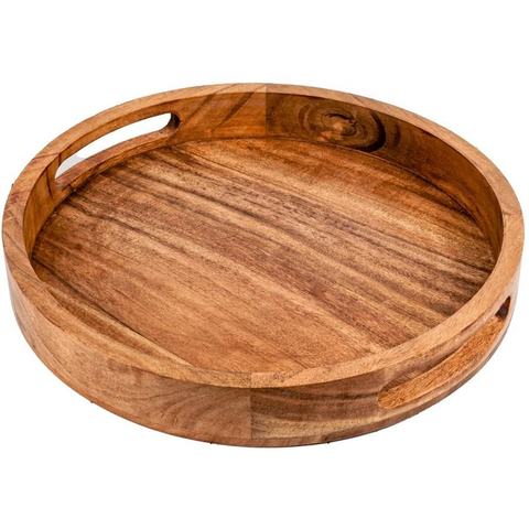 FLYWOD 2025 Trending Luxury Wholesale Premium Round Wooden Tray Wholesale Serving Trays Acacia Wood Tray